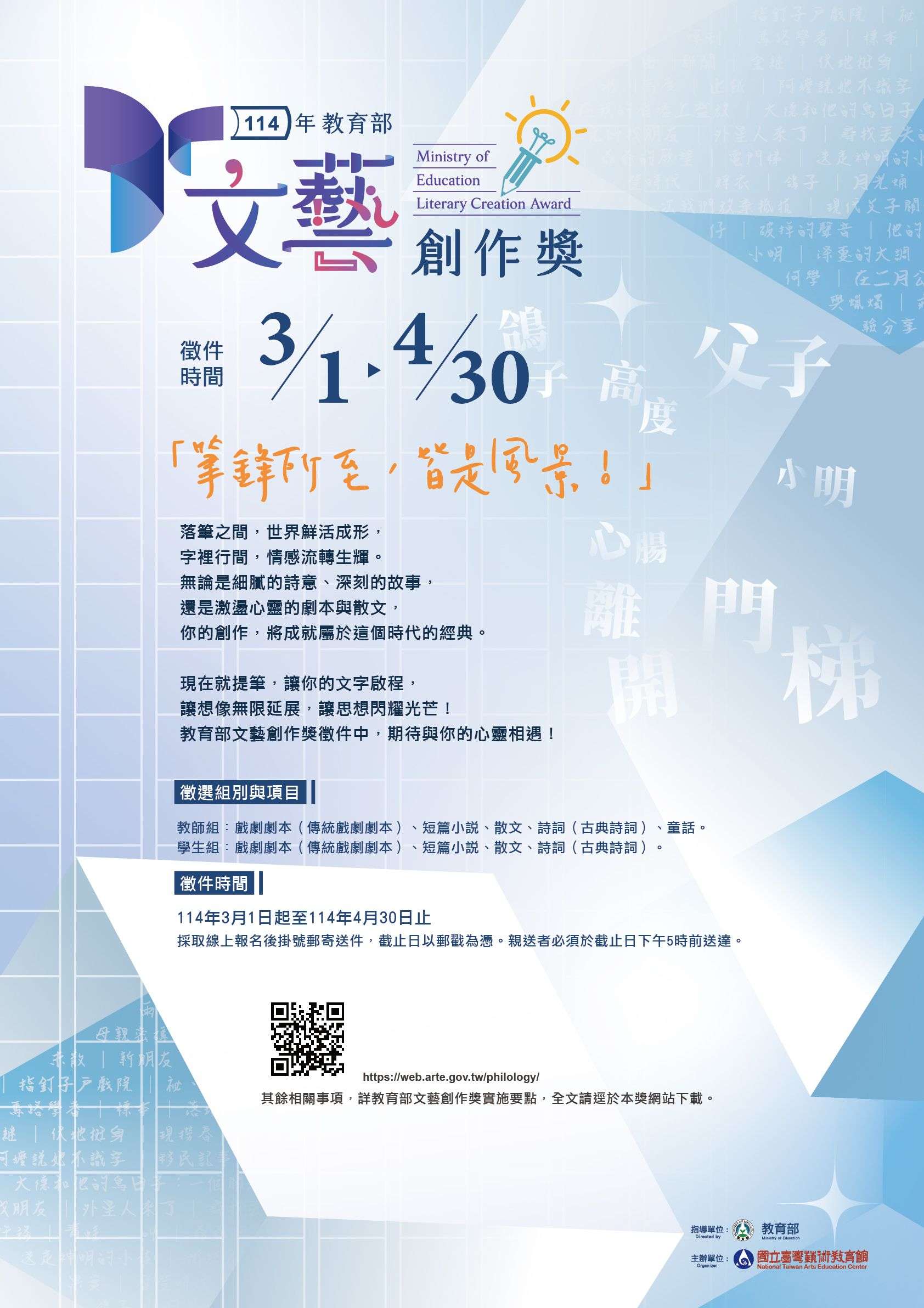 一、依據國立臺灣藝術教育館114年2月18日藝視字第 1140200041號函辦理。