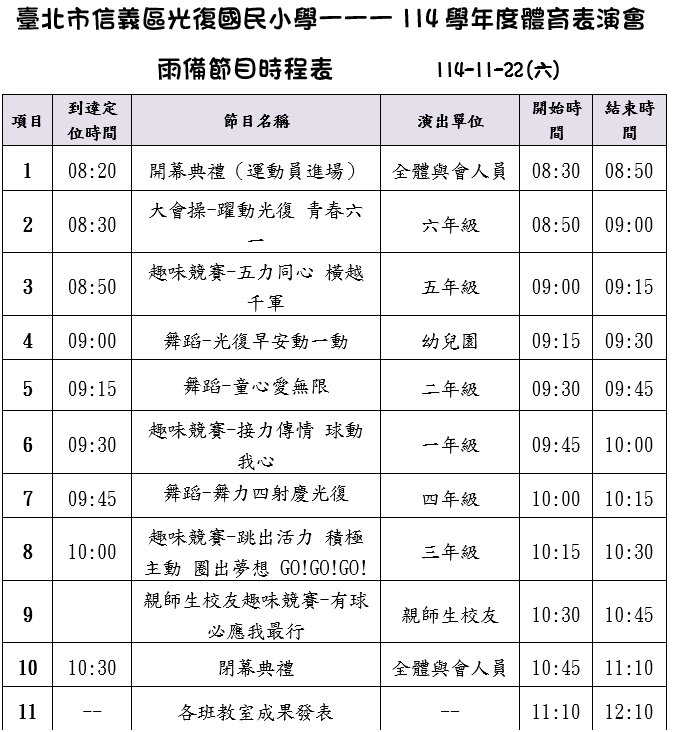 以上時間表僅供參考,實際時間以現場為主
