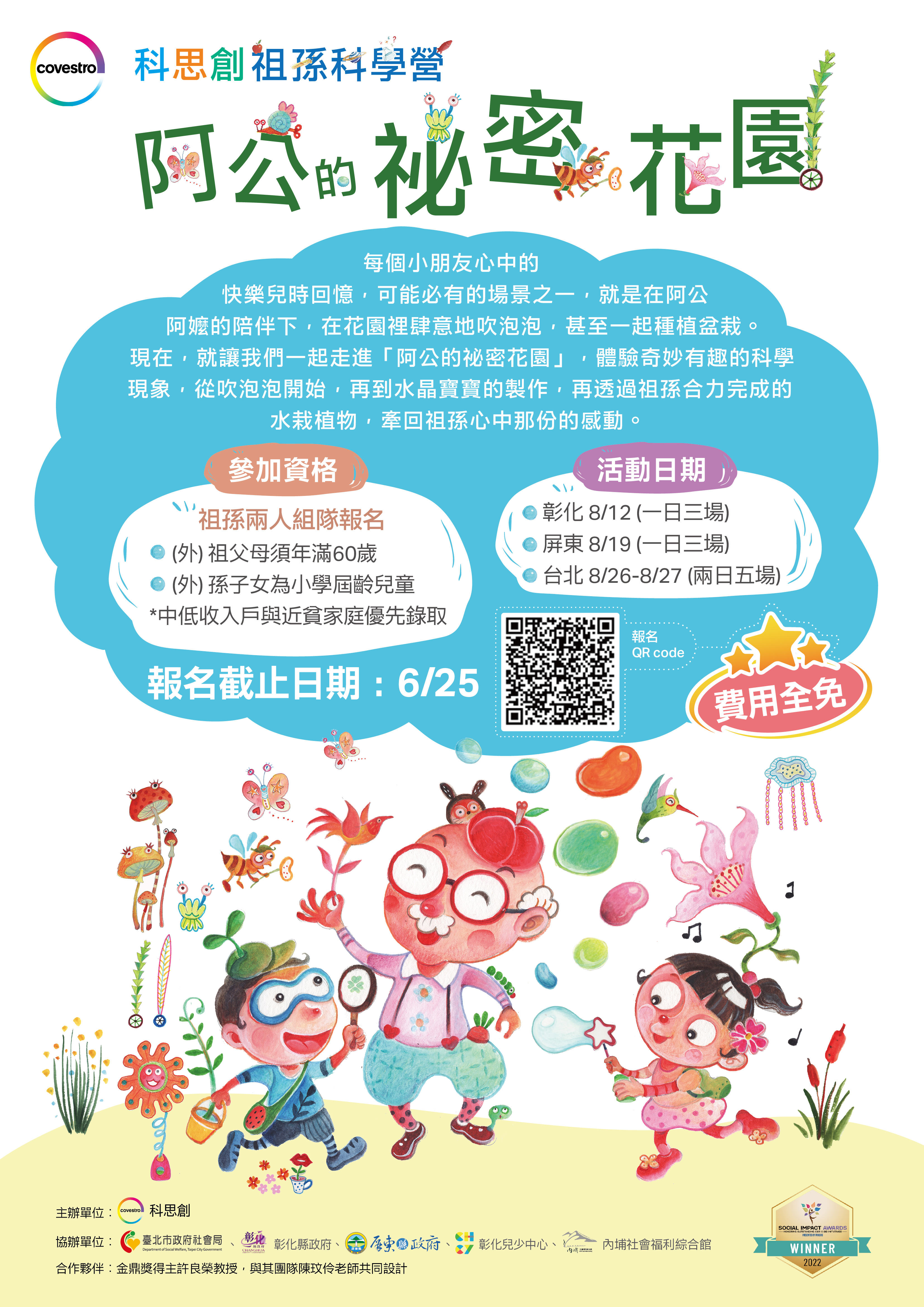 (五)活動內容:將由一位老師主講,並有隨堂志工從旁協 助,搭配圖示化實驗步驟手冊,帶領祖孫體驗科學實驗 (吹泡泡、水晶寶寶製作)。