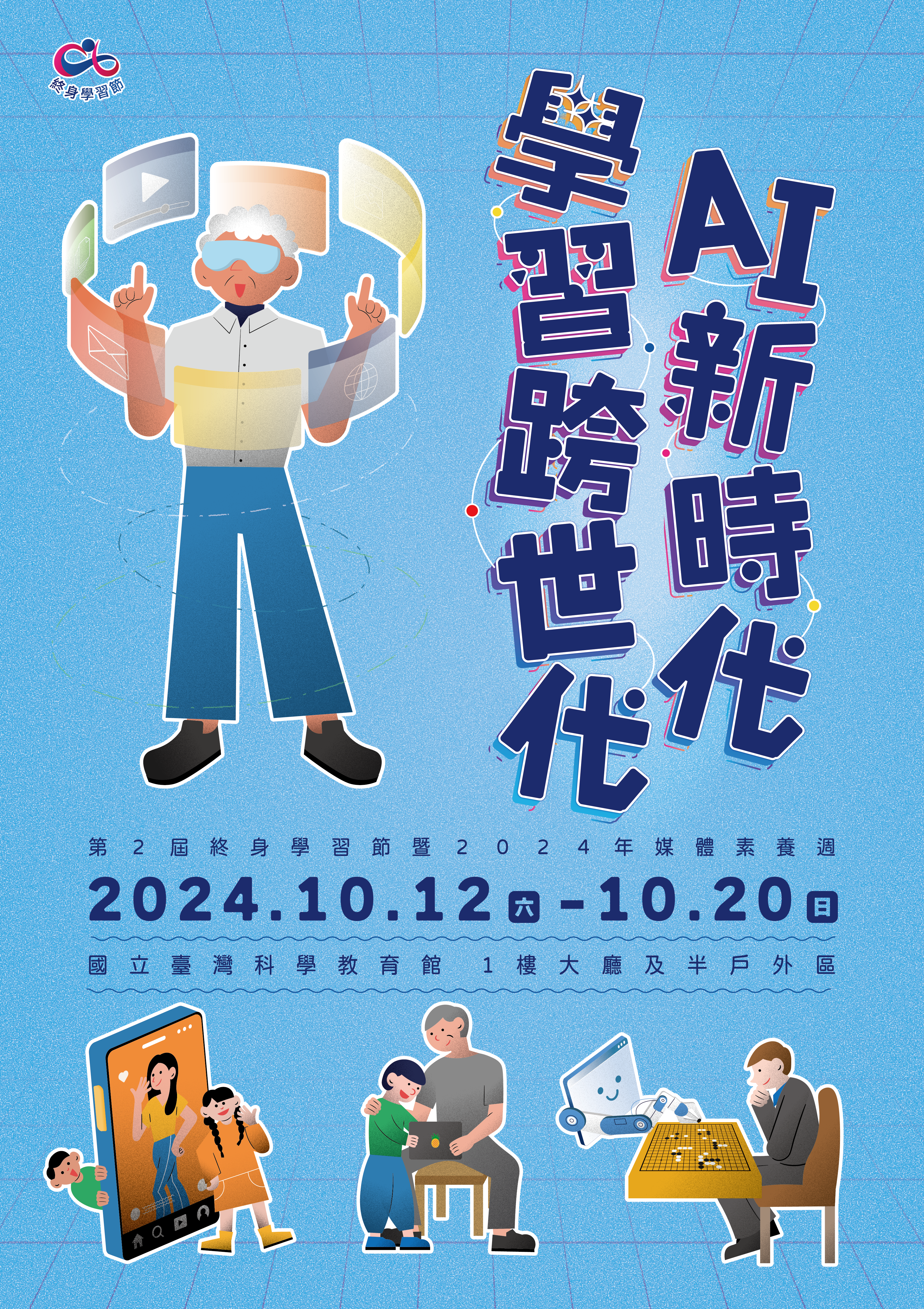 三、本年度活動主題為「AI新時代,學習跨世代」,並規劃融入「辨識假訊息、正確使用短影音、強化網路個資安全」等媒體素養教育議題,其中動態活動主要集中於10月12日及13日兩天,包含:啟動記者會、頒獎表揚、終身學習表演及集章市集、媒體識讀講座及劇場、媒體素養紀錄片及講座與工作坊等多樣活動。
