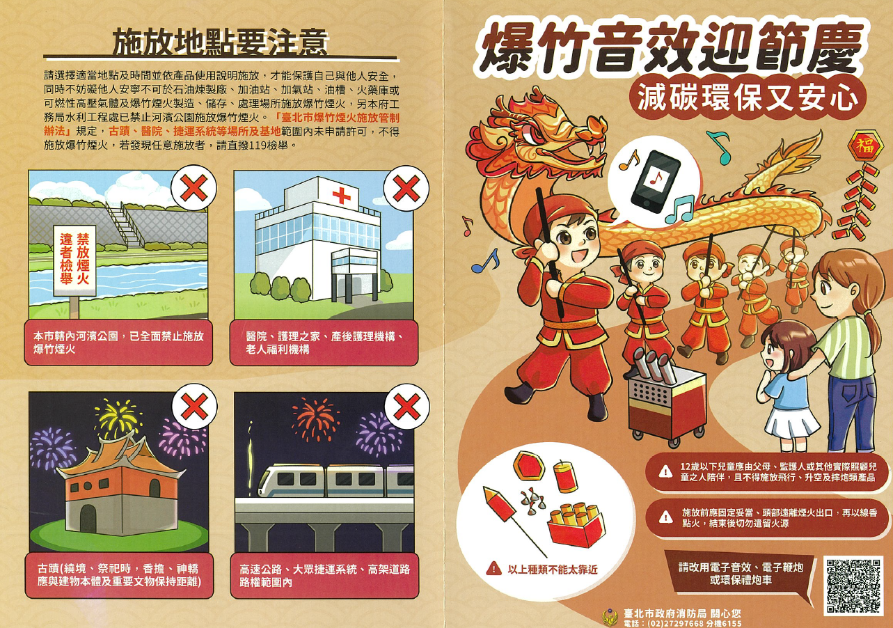 另本府工務局水利工程處已禁止本市河濱公園施放爆竹煙 火。