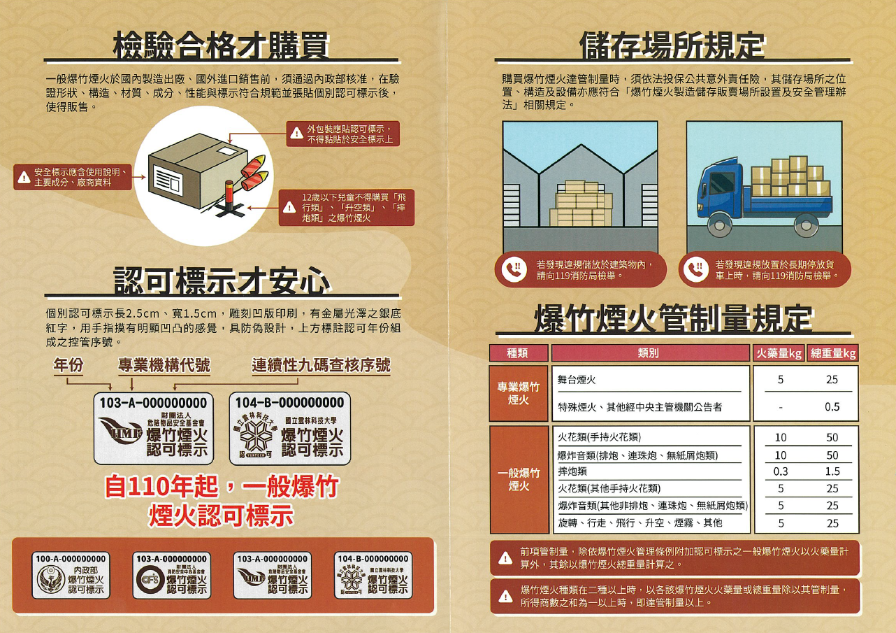 另禁止兒童施放飛行類(如沖天炮)、升空類 (如空中美人)及摔炮類等一般爆竹煙火。