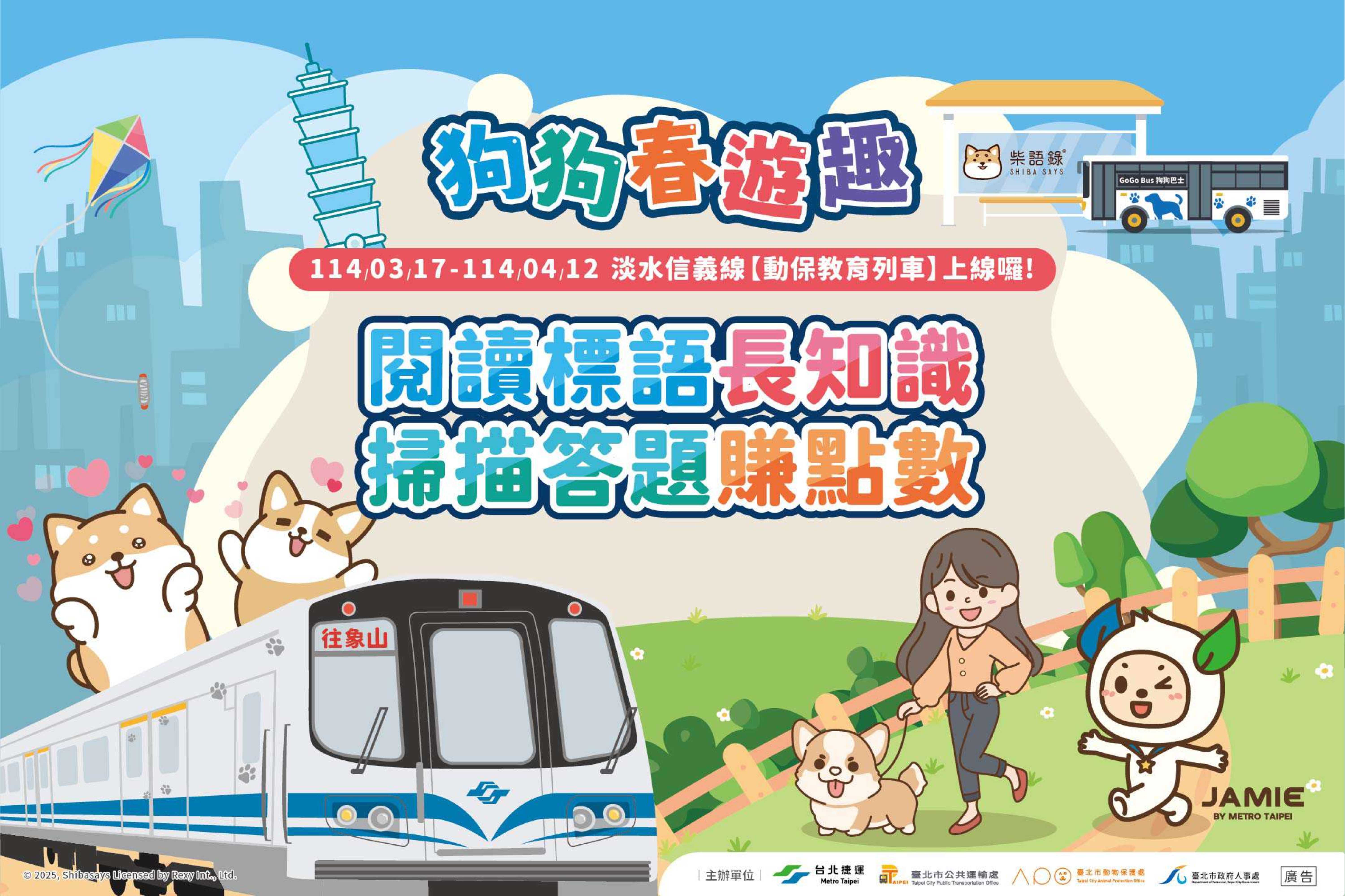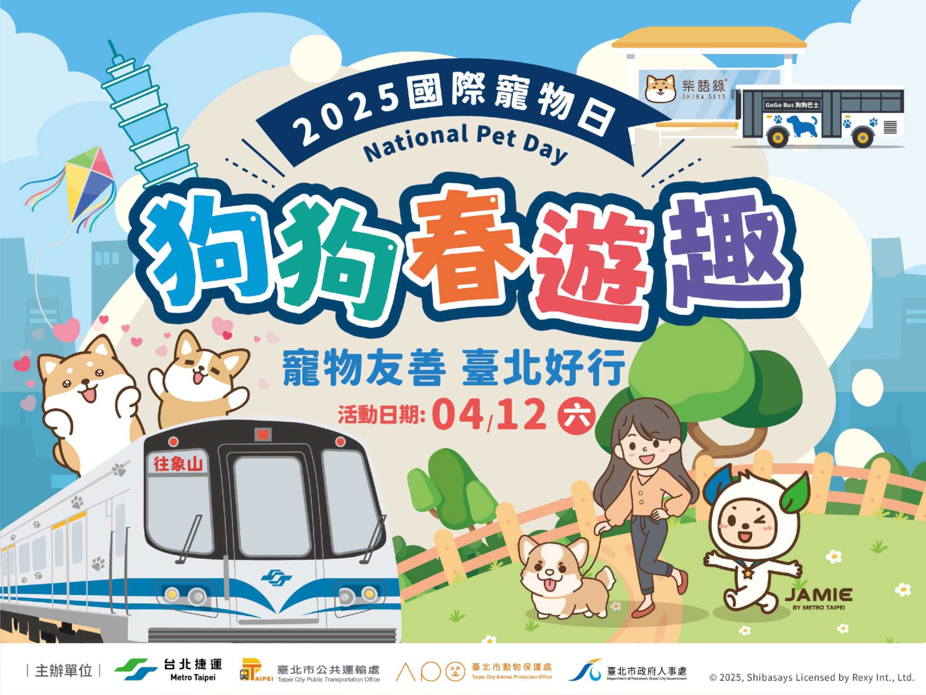 一、為推動本府友好動物政策及促進員工與動物友善互動環境,人事處共同與臺北大眾捷運股份有限公司(以下簡稱臺北捷運公司)、臺北市動物保護處及臺北市公共運輸處於114年4月12日(星期六)下午1時至5時假信義廣場辦理「臺北市政府員工同伴動物日」結合「2025國際寵物日狗狗春遊趣」。