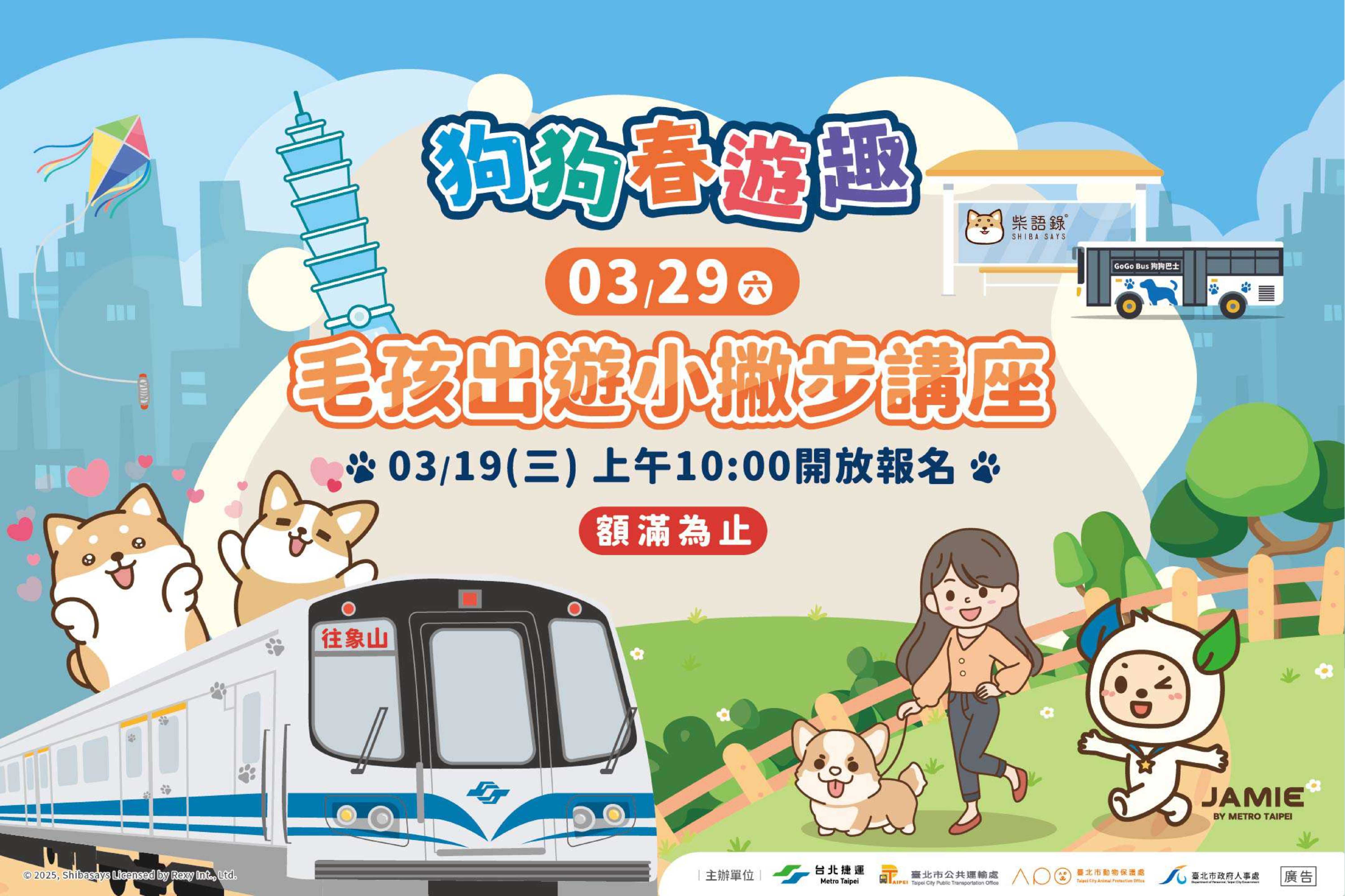 二、臺北捷運公司為讓飼主更了解同伴動物,於114年3月29日(星期六)舉辦2場「毛孩出遊小撇步」講座,講座區分「貓奴必選」及「狗爸媽專屬」2大主題,特別聘請專業獸醫師針對貓隻跟犬隻的不同特性,說明飼養的基本知識,以及無論是出遊、就醫或其他事由而有出門需求時的事前準備與注意事項等,講座每場限量170名,114年3月19日(星期三)上午10時開放報名,額滿為止。
