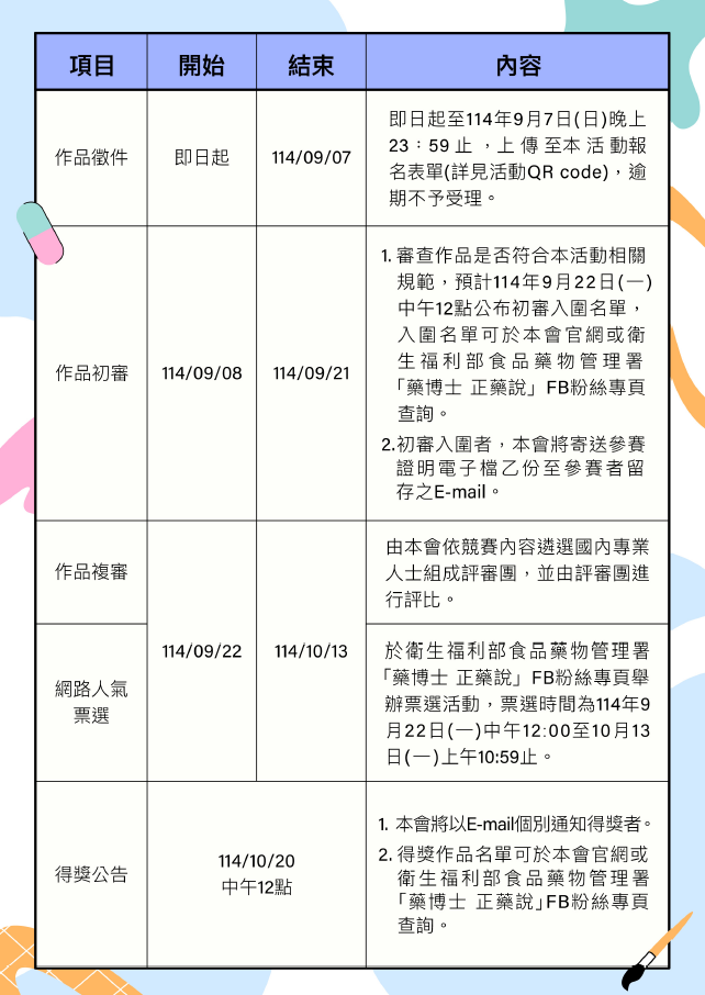 活動資訊亦公告於食藥署「藥博士正藥說」Facebook粉絲 專頁(https://www.facebook.com/share/p/1AC9pjC64M /)