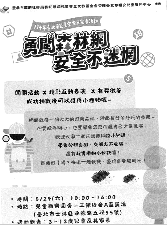 🌲114臺北市兒童安全宣導日【勇闖森林網,安全不迷惘】🌲