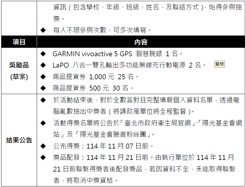 衛生局辦理114年度「向菸檳酒說不!答題拿好 禮挑戰GO」活動
