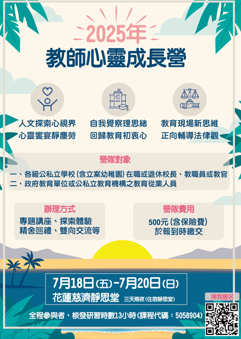 (一)活動時間:114年7月18日(星期五)至7月20日(星期日), 三天兩夜,住宿靜思堂。