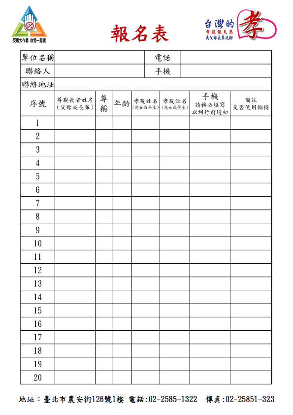 參加辦法:報名時間自即日起至額滿為止,採團體報名方 式,每20組為一團,紙本傳真報名表(傳真號碼:02- 2585-1323)或網路報名https://event.ctfproc.tw /signup/。