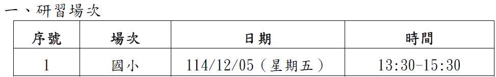 (一)地點:線上研習採 Google Meet 線上視訊方式辦理,線 上研習連結於活動前一週 e-mail 通知報名成功者。