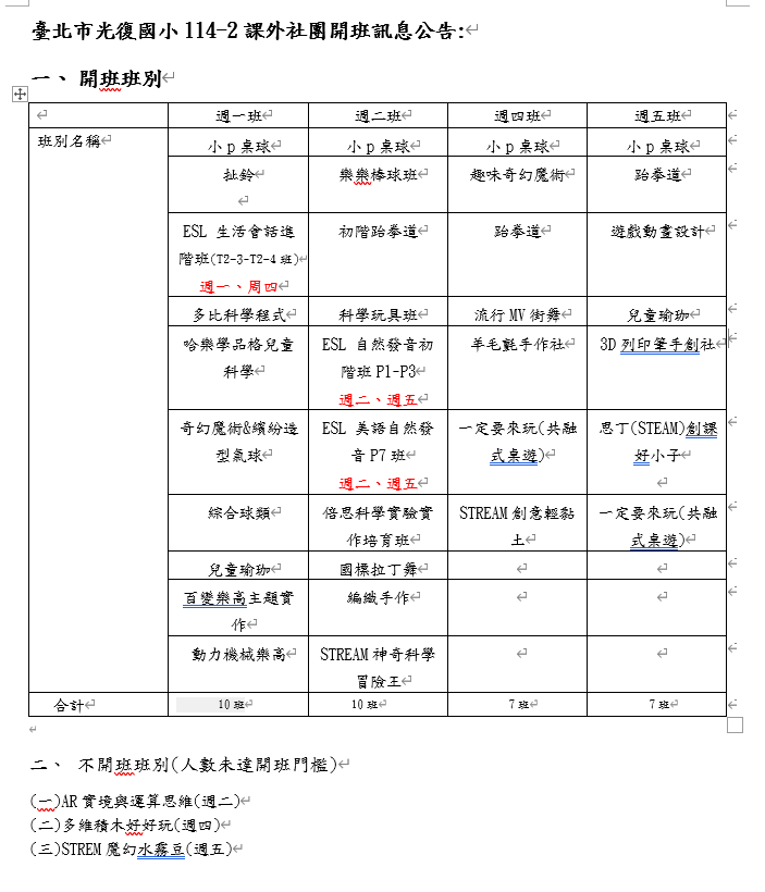 3.不開班之班別,會由學務處統一辦理退費(匯至家長帳戶),提醒家長及早為孩子規畫其他課後活動,造成不便,敬請見諒。